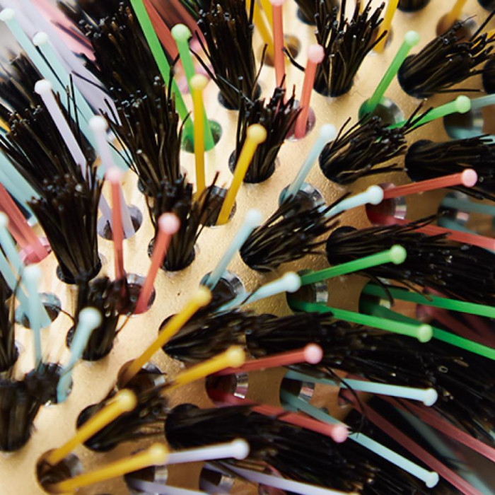 耐熱ナイロンと猪毛を交互に交互に植毛したことにより、髪が絡みづらく扱いやすい。